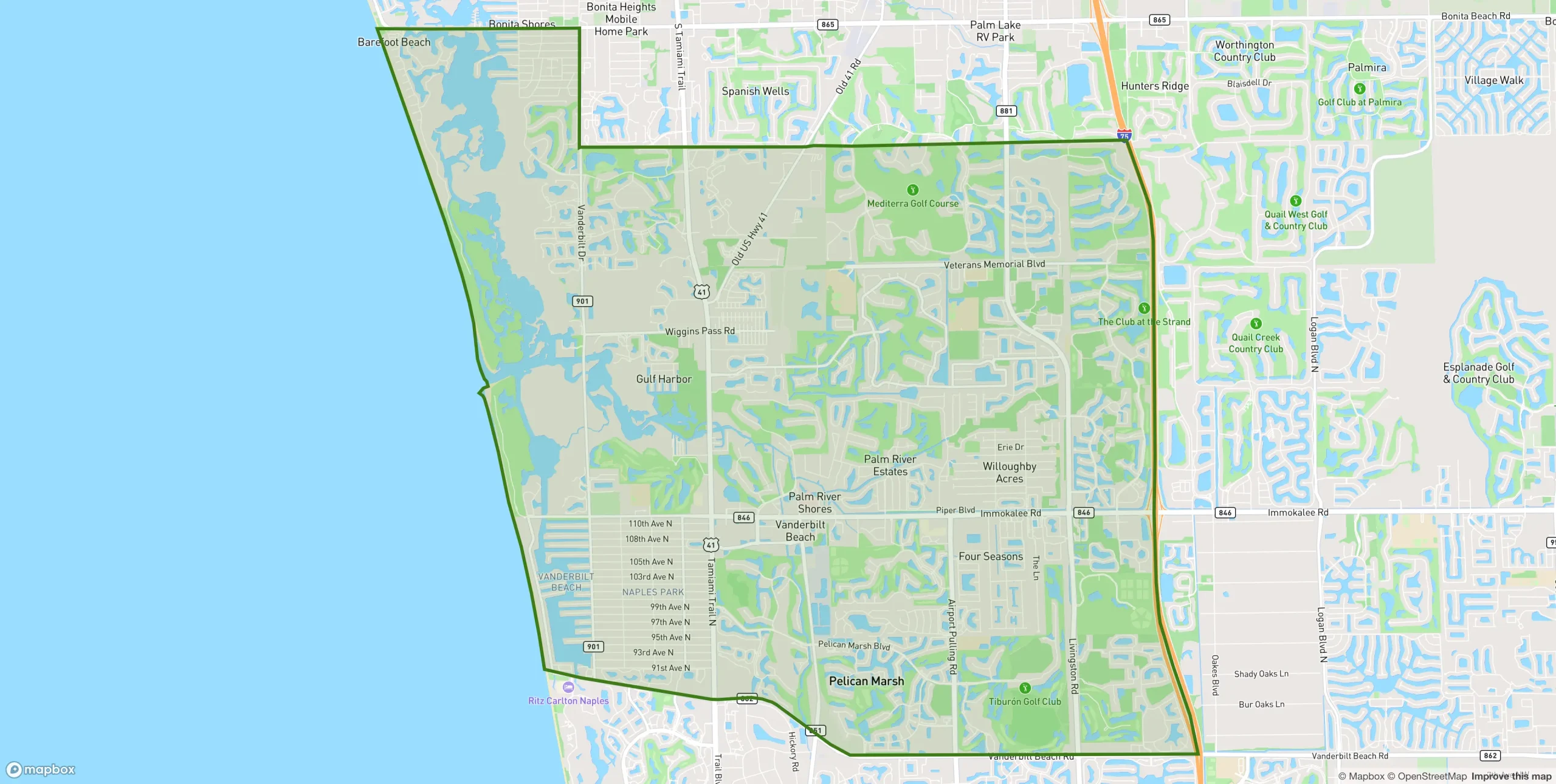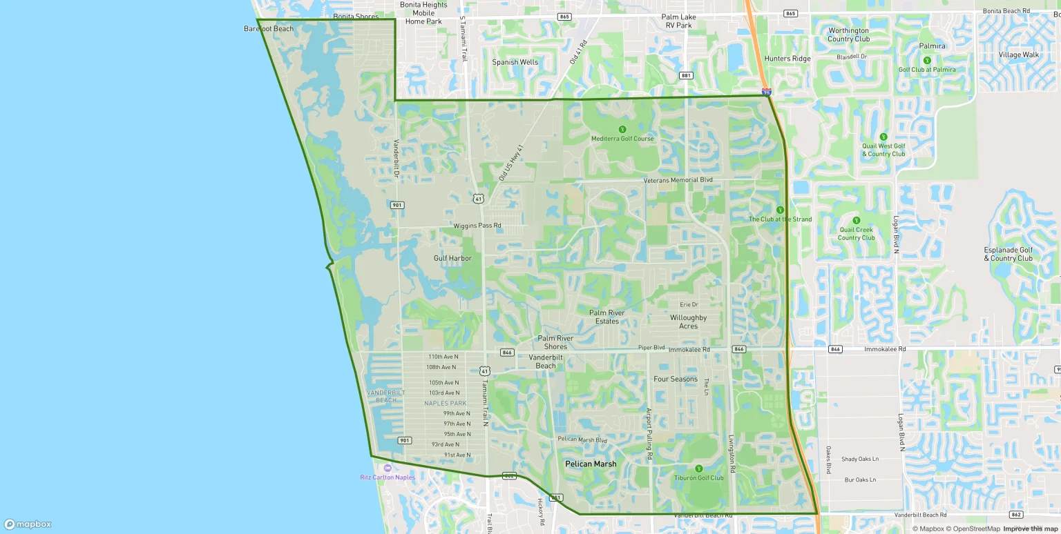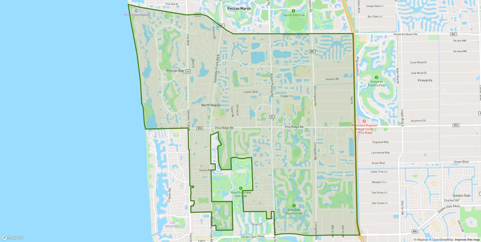 With the exception of the City of Naples, please know that each location that follows is unique to our site. The ability to search real estate by Naples location is site exclusive, as are the way we define Naples locations. The reasons for this are that Naples locations as currently defined, if defined at all, are dated, confusing, and in some cases completely inaccurate. Because a current, mutually agreed upon Naples locations map that is beneficial to potential buyers does not exist, we decided to create our own.