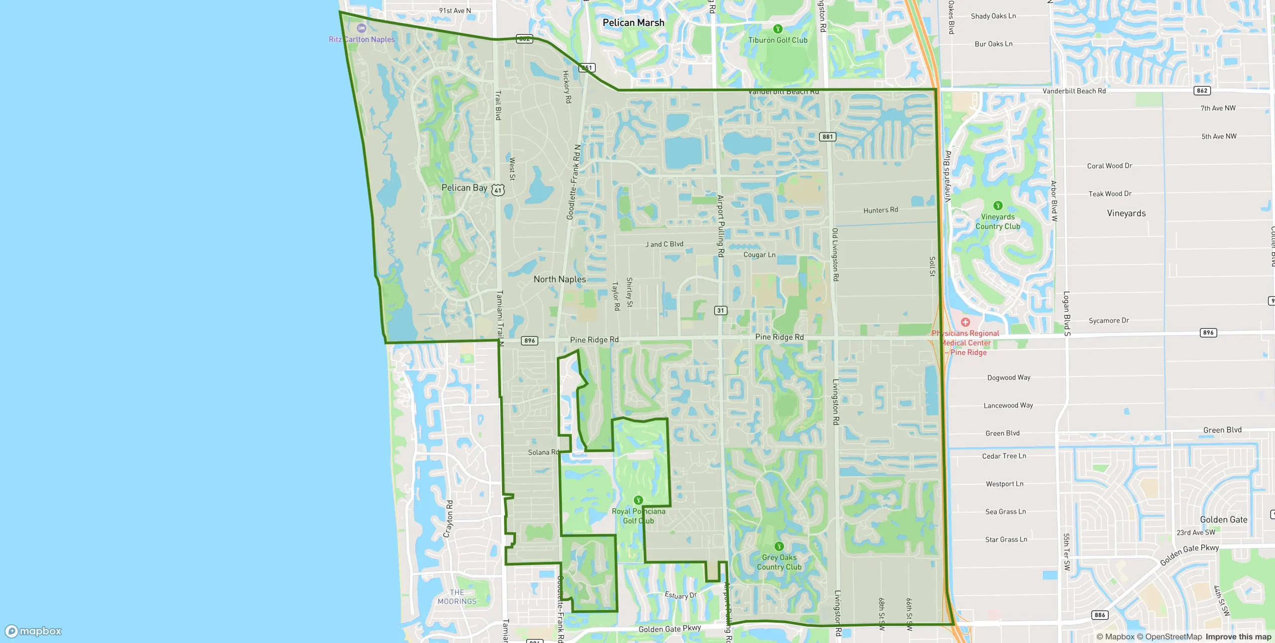 Communities of note include: Grey Oaks, Monterey, Pelican Bay, Pine Ridge and Wyndemere