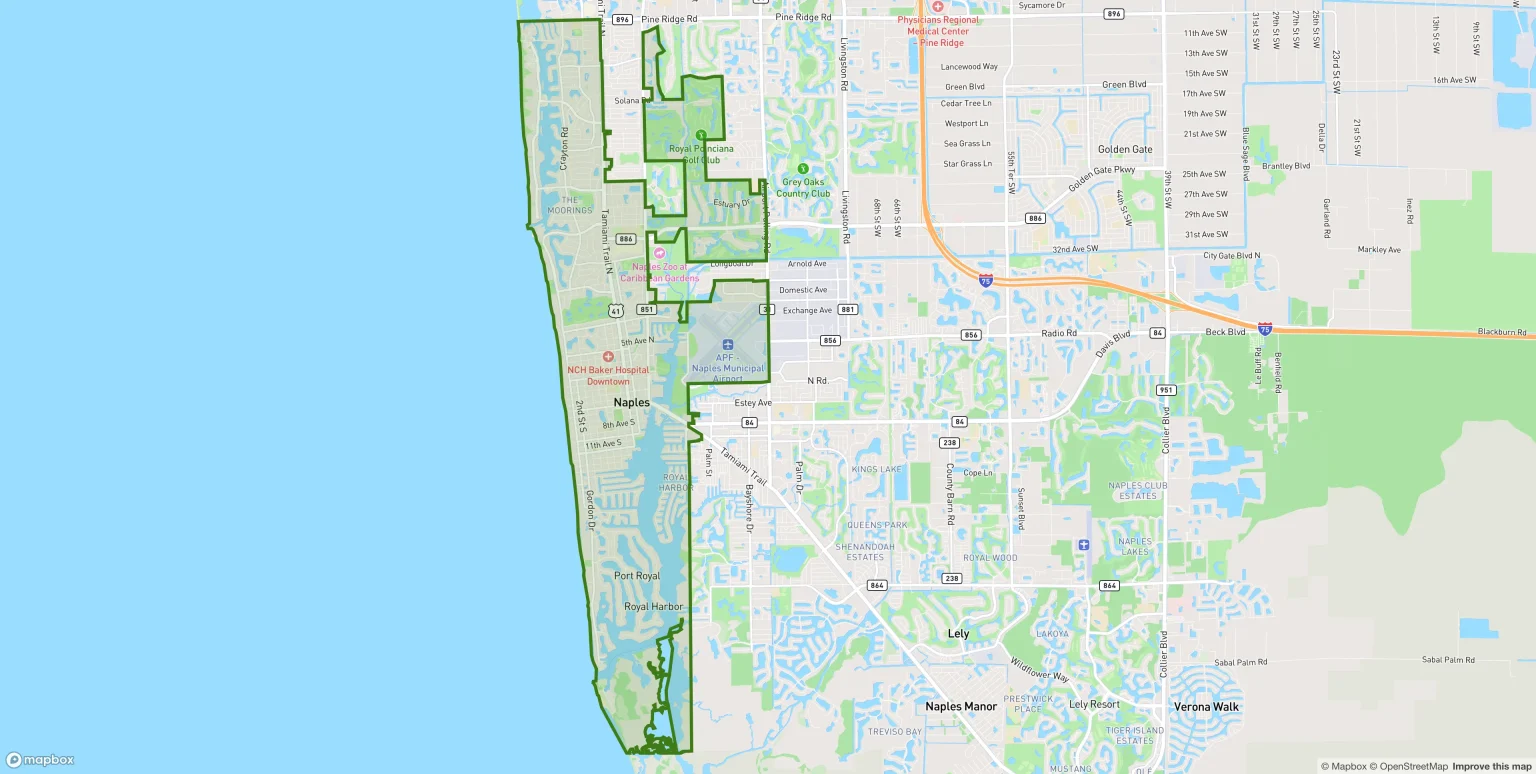 Communities of note include: Aqualane Shores, Coquina Sands, Moorings, Olde Naples, Park Shore and Port Royal